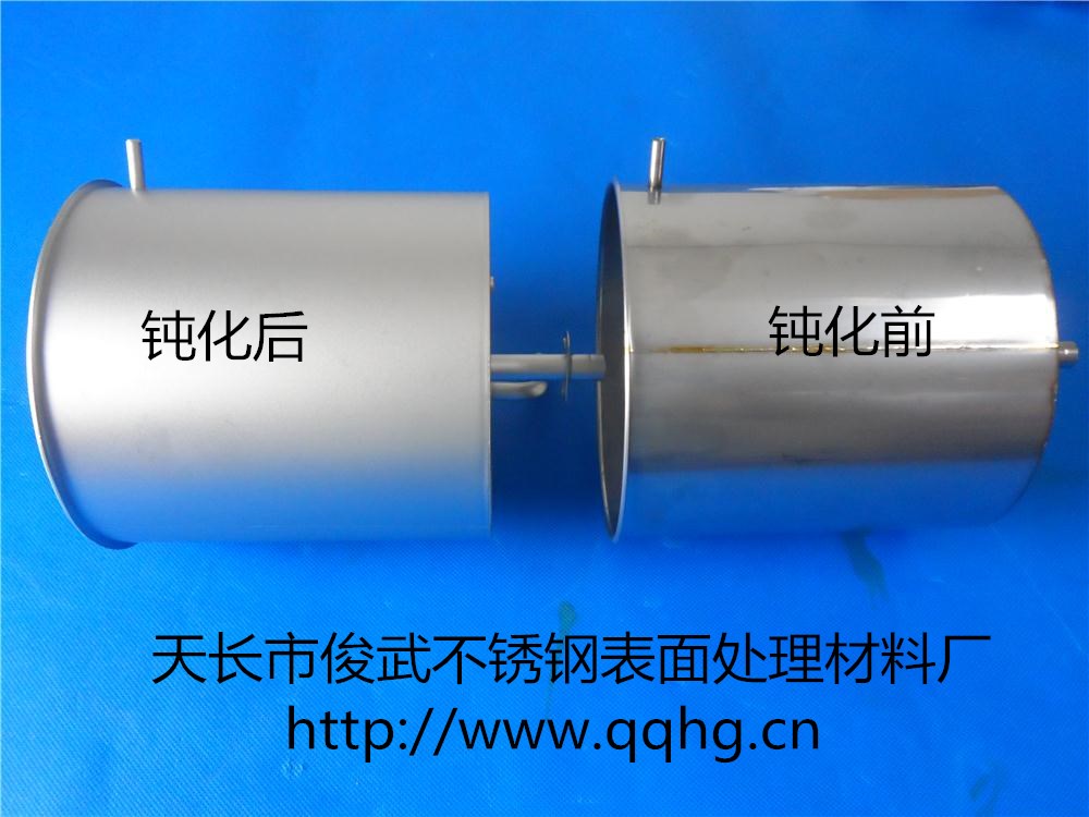 天長市俊武不銹鋼表面處理材料廠,王先生13955097541,m.0756nkyy.com 本產品是膏狀物,鈍化后使工件表面變成******均勻一致的亞白色。 不含六價鉻,采用環保配方。 鈍化后不銹鋼工件的耐蝕能力可提高到10倍以上,***長可通過500小時的標準鹽霧測試。 鈍化的過程是******的化學反應,會在不銹鋼的表面生成完整的,致密的,不易破壞的鈍化膜。 操作說明: 1.涂刷鈍化膏,厚度為1-2MM,停留時間為1-20分鐘,必經工序, 酸洗鈍化完成的標準是看表面鈍化膜是否完整,當工件表面******被亞白色所覆蓋后表示鈍化是合格的。 2.中和,用片堿溶液沖洗工件表面,如果表面形狀簡單,沒有鑼紋,沒有盲孔,可省略此步。 3.過純水,可選工序。 4.作業人員在操作時需要戴好勞動保護用具,避免鈍化膏與皮膚的接觸。 5.本產品不燃不爆,但應避免陽光直射,不使用時封好蓋后在45攝氏度以下存放。 環保性能:本產品符合環保要求,有SGS公司出具的RoSH報告。